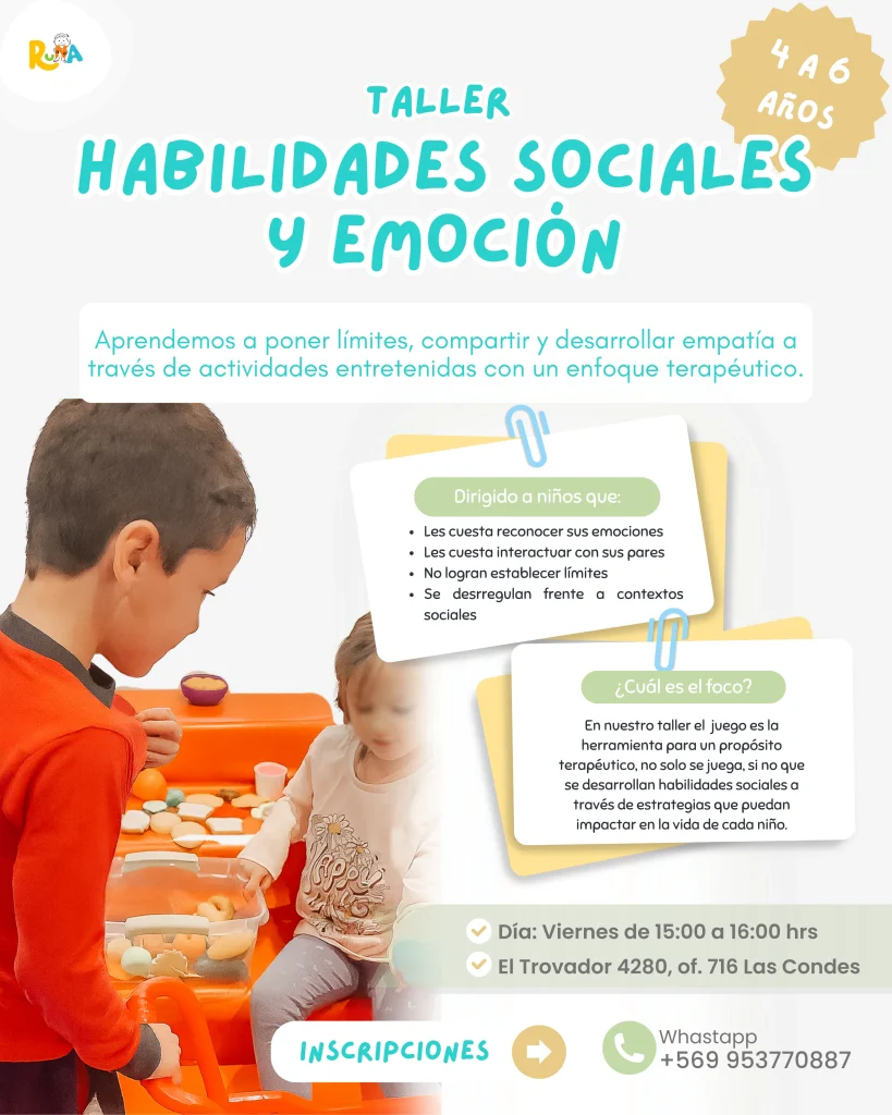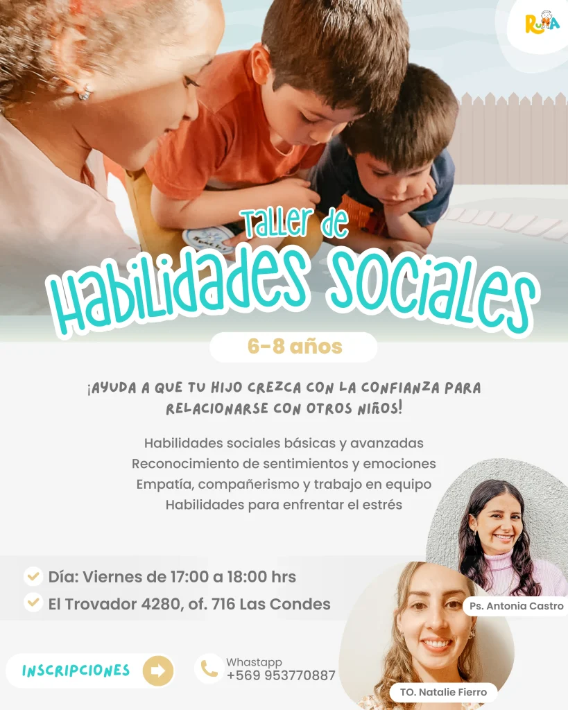 El taller de habilidades sociales para niños, está diseñado para fortalecer las habilidades sociales esenciales que permiten una comunicación efectiva, relaciones interpersonales saludables y una mejor adaptación a distintos entornos sociales. A través de dinámicas participativas, juegos de roles, ejercicios prácticos y reflexión grupal, los participantes aprenderán a expresar sus ideas con claridad, escuchar activamente, manejar conflictos de manera asertiva y desarrollar empatía. Nuestros talleres de Habilidades Sociales se llevarán a cabo en nuestro centro ubicado en Las Condes, todos los días viernes.